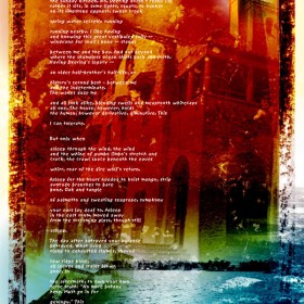 They fall oblique. The head’s pin tufts bobbing. They fall rough. Could be buffalo scruff, this duck baby down. They are alien meat. Perpendicular the wing joints conniving in emerald or aqua, splaying a murky diet of mindless plankton, algae sunbathing upstream. This is where water takes shape, the creaturely…